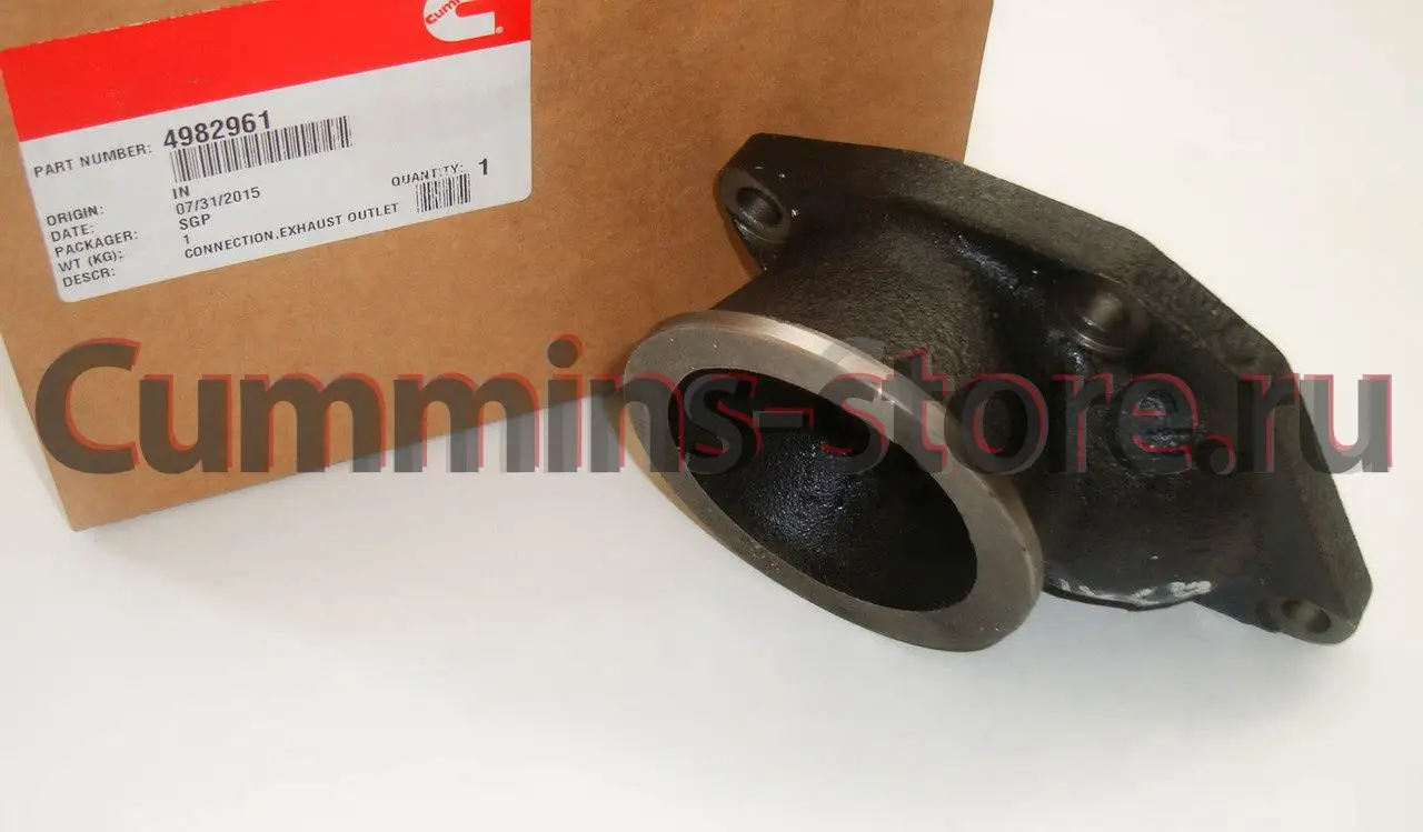 Выпускной патрубок турбокомпрессора Камминз / Connection Exhaust Outlet Cummins 4982961 C6205115670 на двигатель Cummins B3.3, QSB3.3