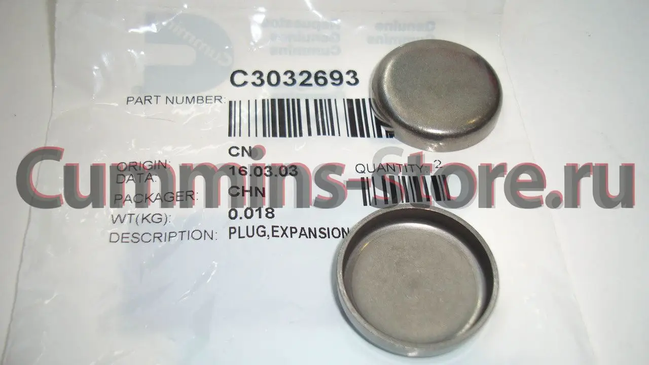 Заглушка головки цилиндров Камминз / Expansion Plug Cummins 3032693 на двигатель Cummins B, ISB, QSB и др.