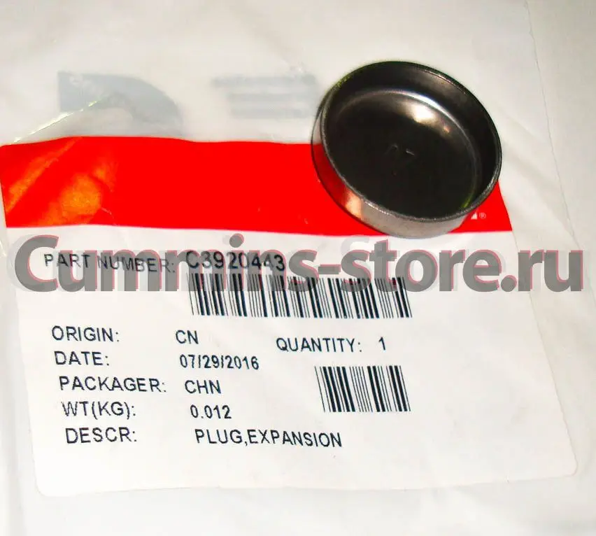 Заглушка Камминз / Expansion Plug Cummins 3920443 на двигатель Cummins B, ISB, QSB и др.