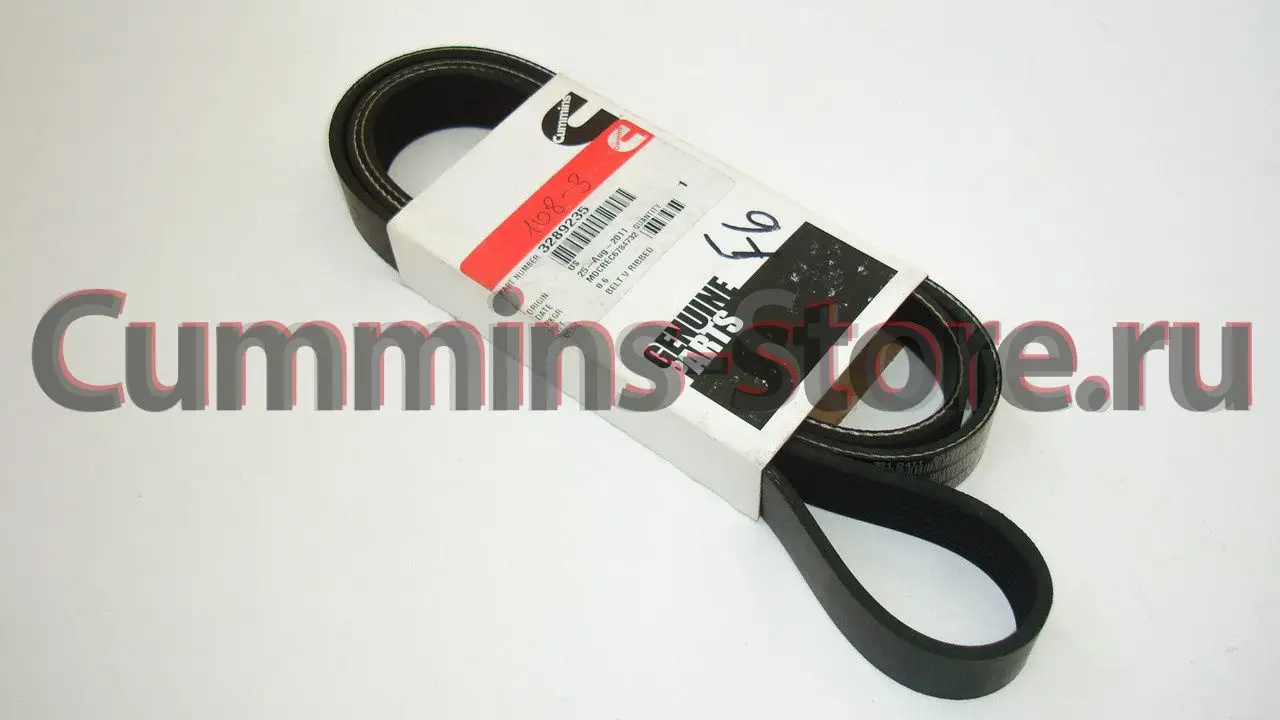 Поликлиновый ремень привода водяного насоса Камминз / V Ribbed Belt Cummins 3289235 3806077 на двигатель Cummins B, ISB, QSB