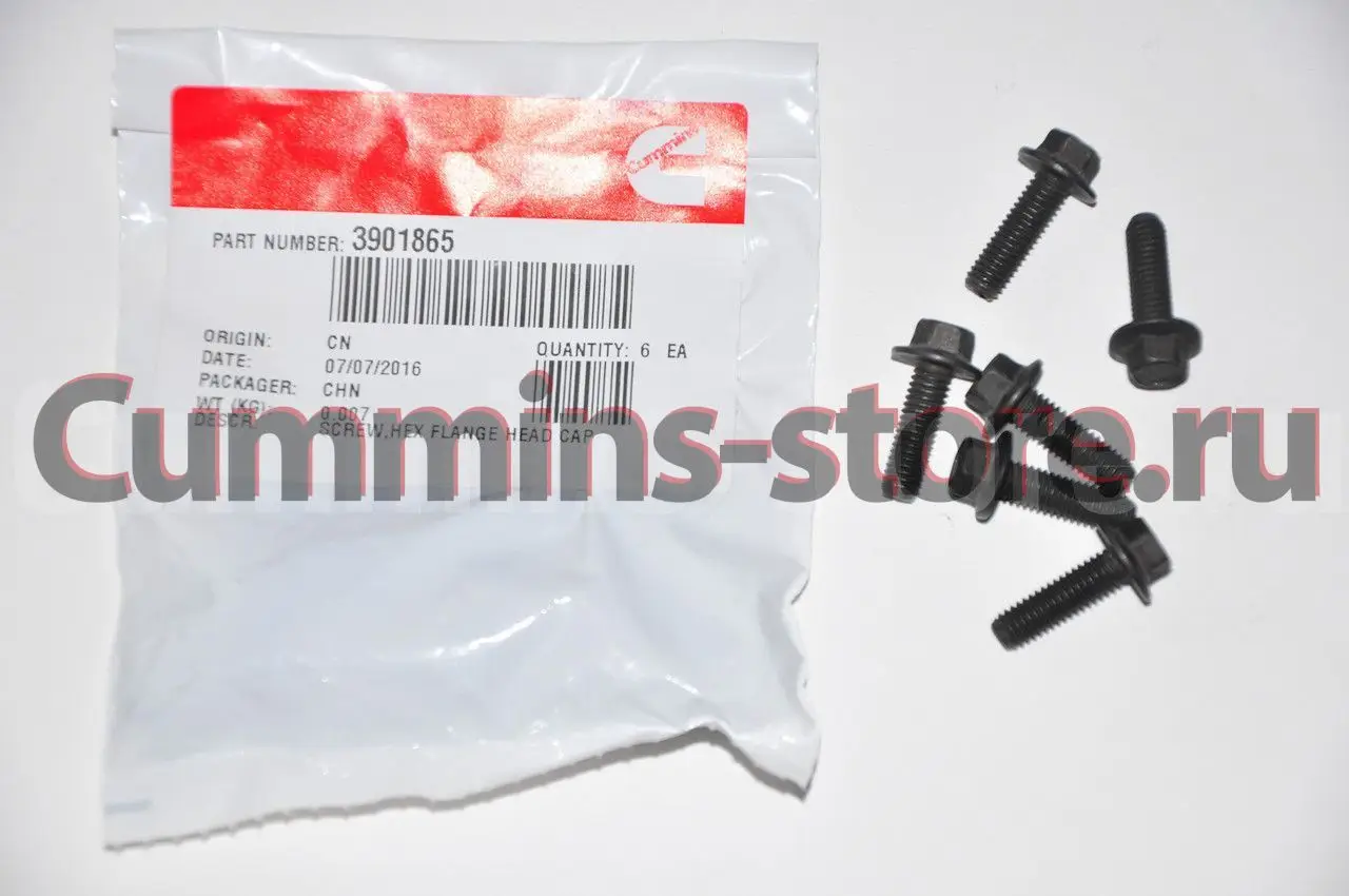 Шестигранный болт с фланцем / Hexagon Flange Head Cap Screw Cummins 3901865 3349509 на двигатель Cummins B, ISB, QSB