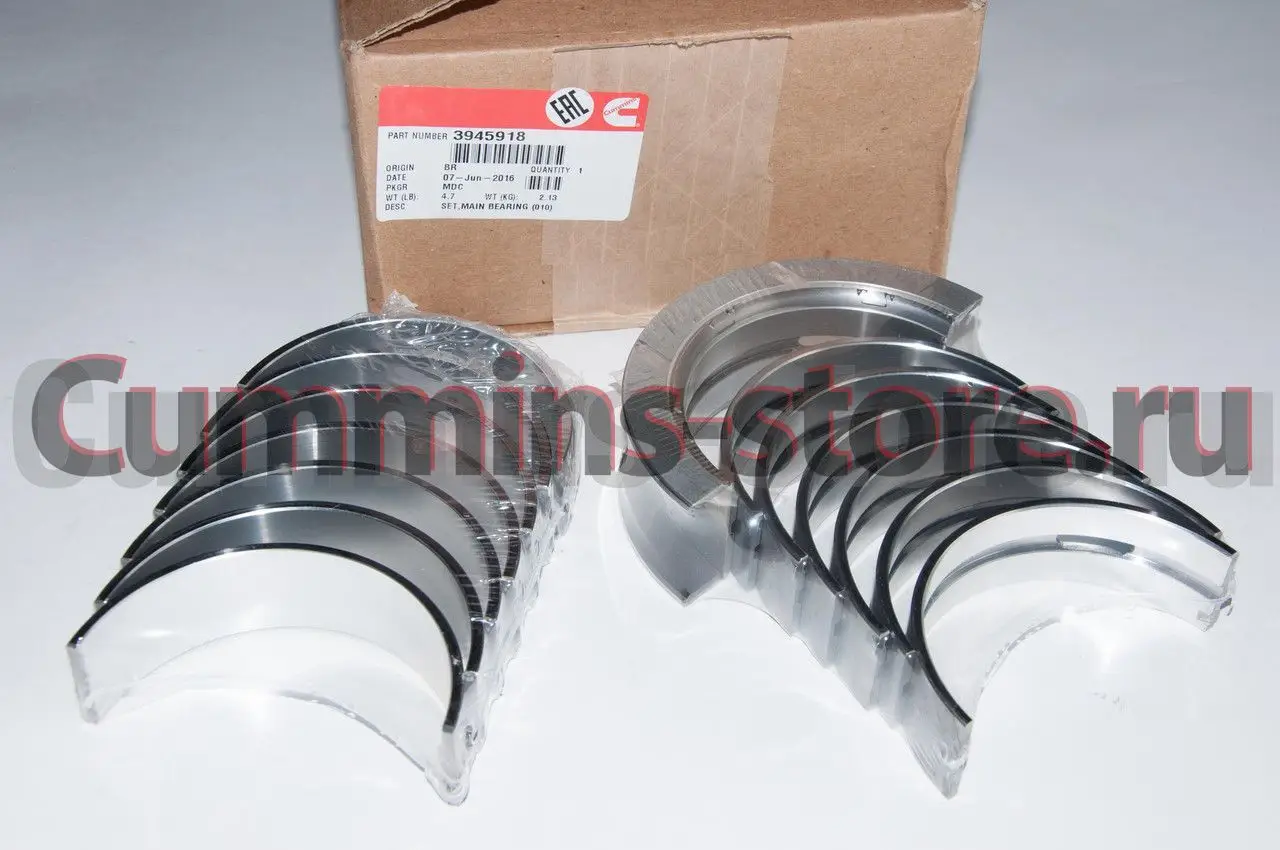 Вкладыши коренные (комплект) 0,25 мм (0,010 дюйма) / Set, Main Bearing Cummins 3945918 3800271 на двигатель Cummins ISL, ISC