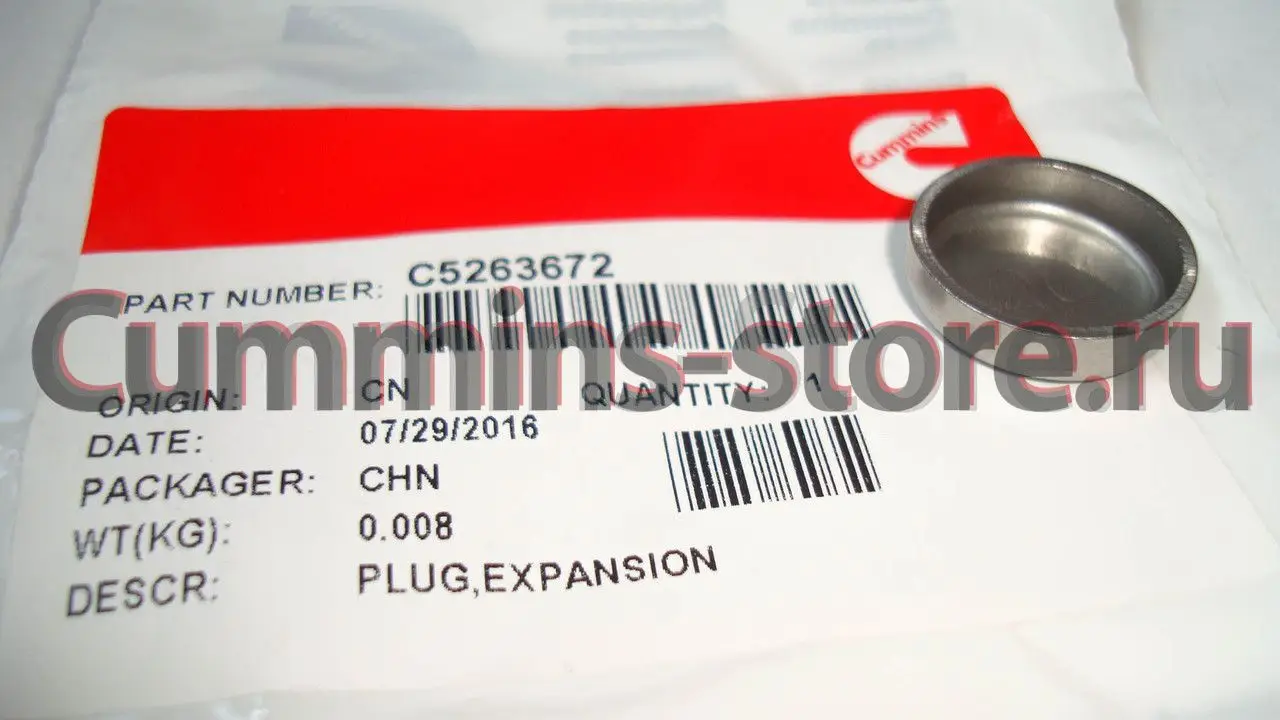 Заглушка Камминз / Expansion Plug Cummins 5263672 на двигатель Cummins B, ISB, QSB и др.